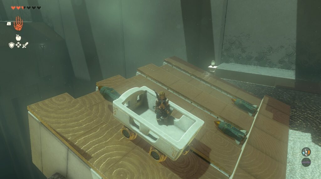 ミサイルをトロッコに装着する。バランスが崩れると登れないので真ん中のやや下あたりに装着するとよい。