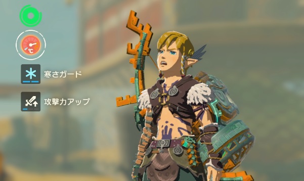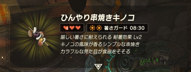 ゲルド砂漠での昼間の時間帯は非常に気温が高く、あまりの暑さでリンクがダメージを受けていきます。サーモメータ―が赤く点滅している時は、時間経過でハートが減少していきます。