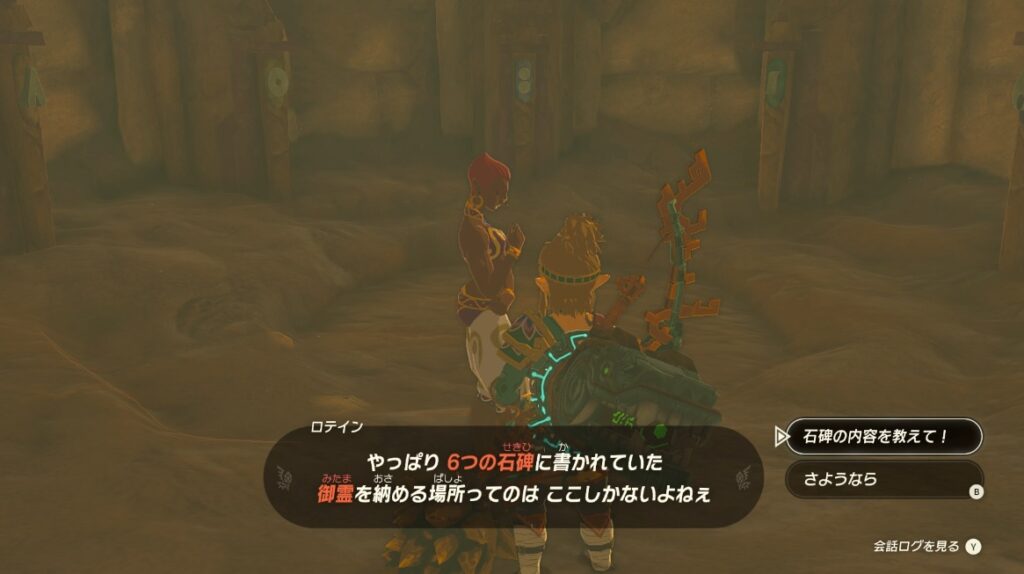 ゲルド族の聖域を奥まで進み八英雄像の間にある石碑を調べる。