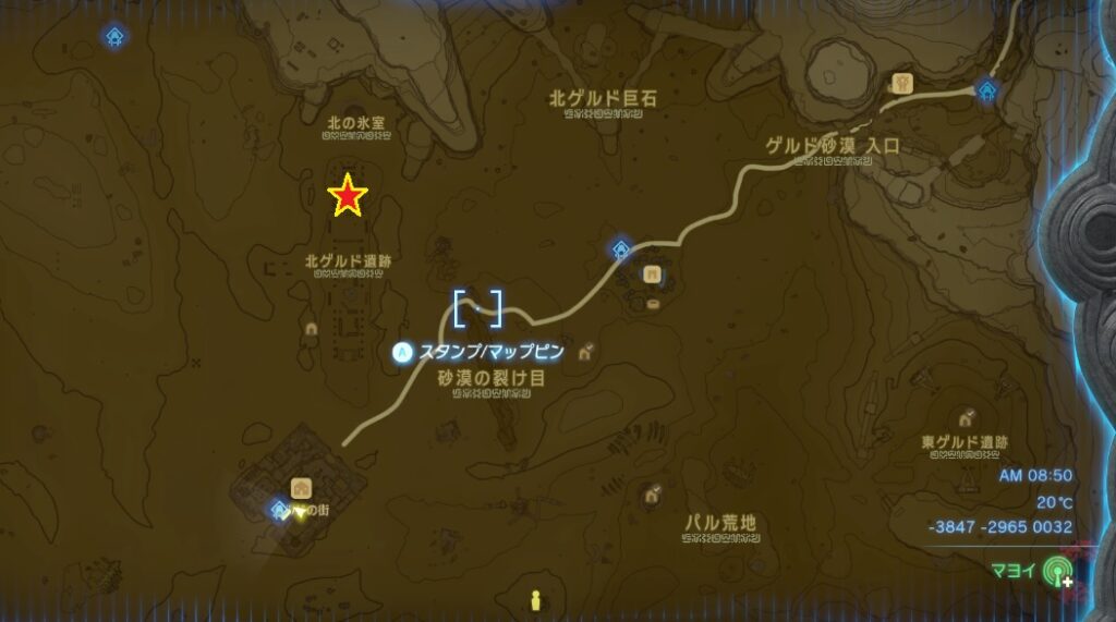 北ゲルド遺跡はストーリーでルージュがいた場所で、遺跡の北側にある窪みに大きな珠を嵌めると扉が開いて先へ進めるようになる。