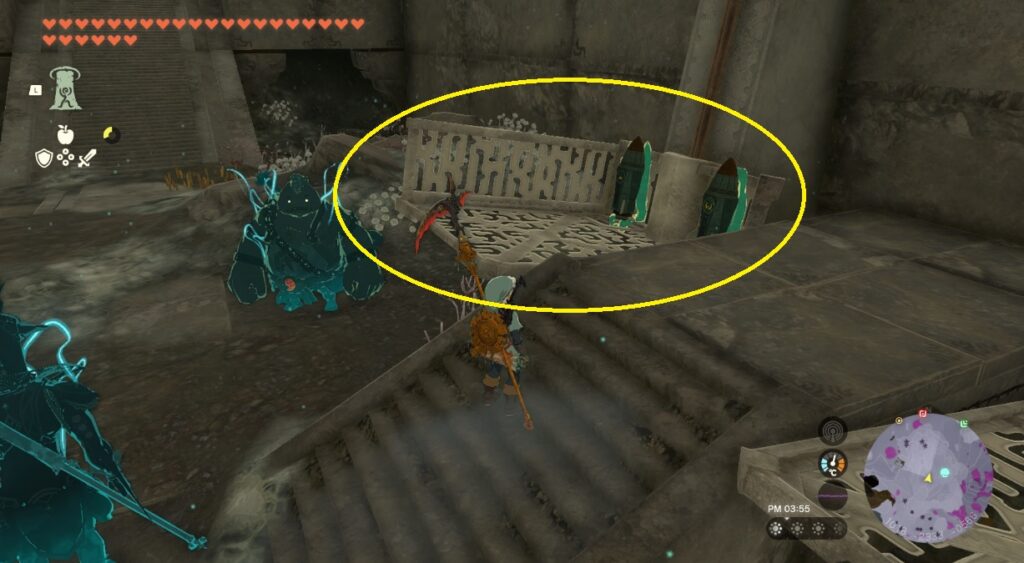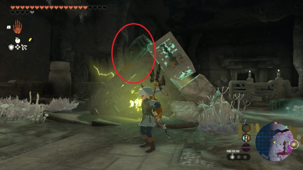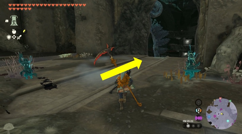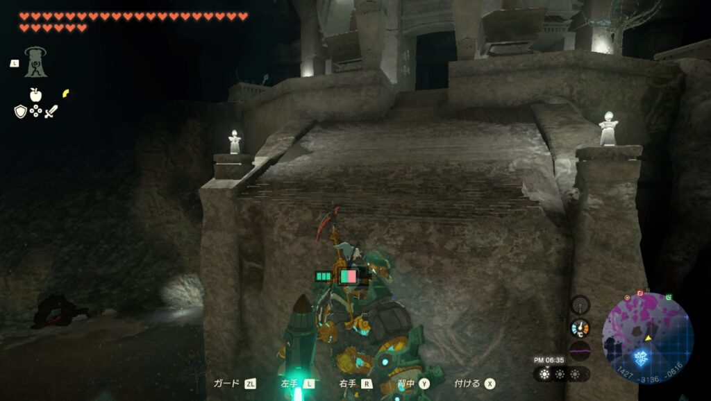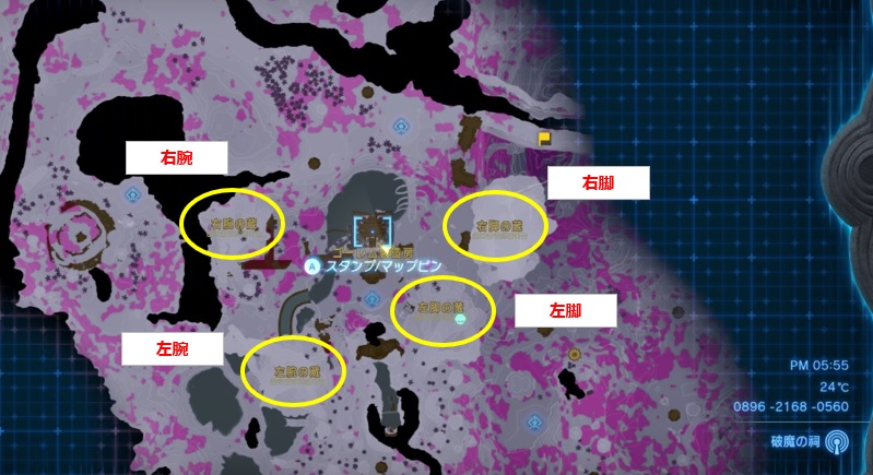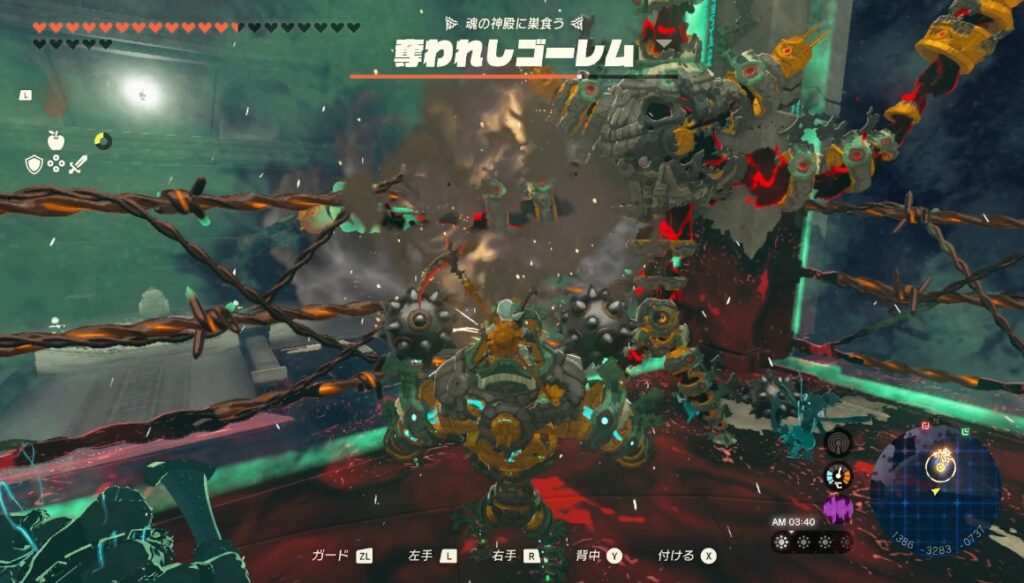 大砲などの遠距離攻撃を装備している場合は空中であてればダウンを取る事ができます。リンクの弓矢でバクダン花でもダウンが取れるので、ゴーレムに遠距離武器がない場合はリンクのバクダン花の矢で対応していこう。