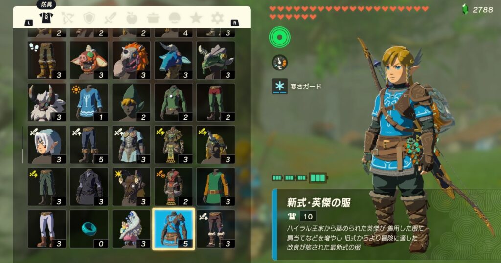 英傑の服には『HPが満タンでなくてもマスターソードでビームを飛ばせる』という特殊効果がついています。